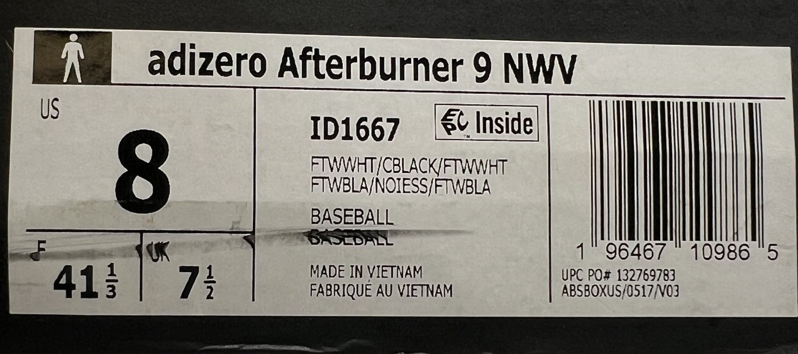 Adidas Adizero Afterburner 9 NWV Baseball Cleats Men’s Size 8 White Black ID1667