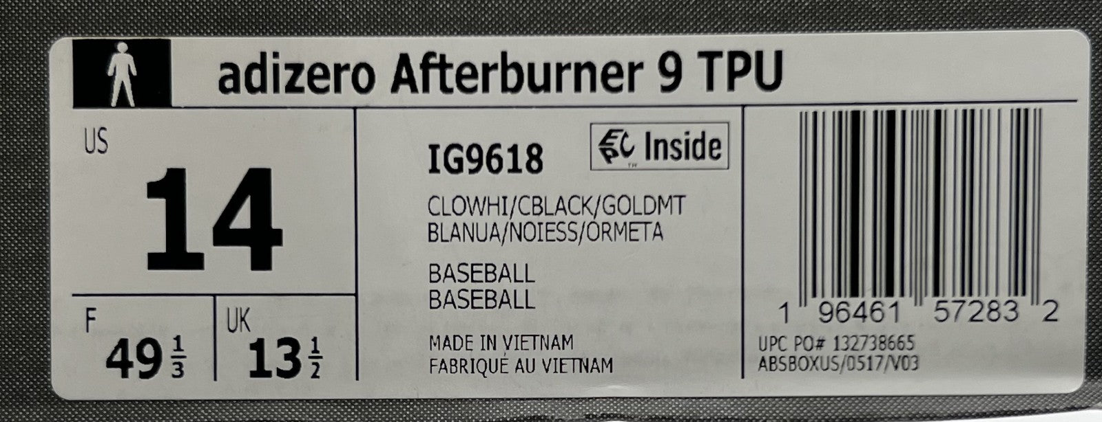 Adidas Adizero Afterburner 9 TPU Baseball Cleats Men’s Size 14 White Gold IG9618