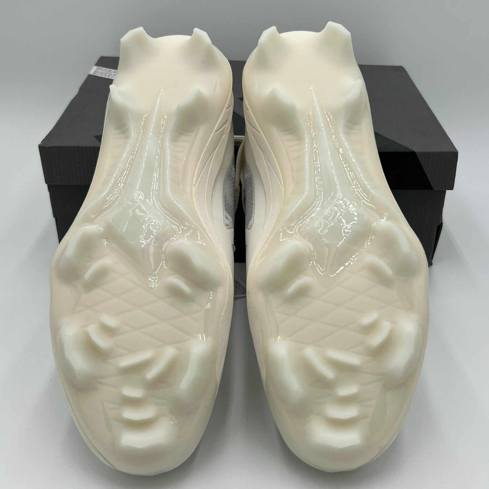 These lightweight cleats feature a sleek white design accented with gold details, offering both performance and standout looks.