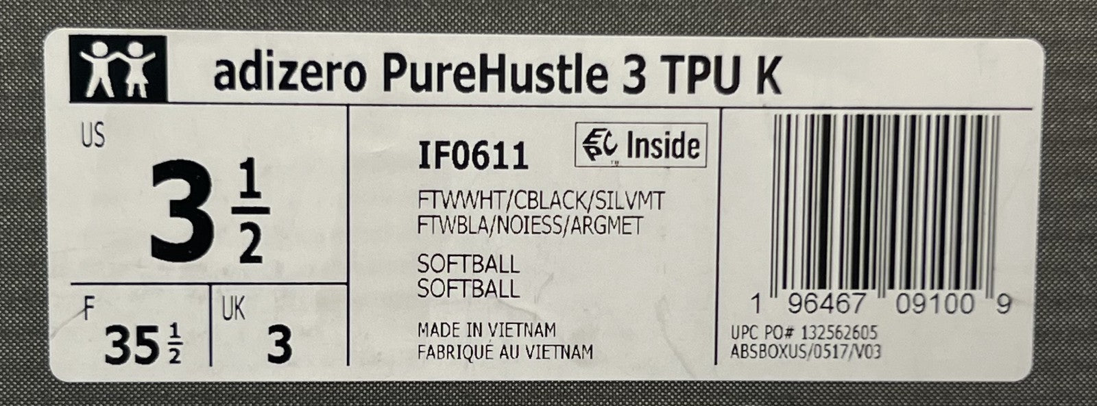 Adidas Adizero PureHustle 3 TPU K Softball Cleats Youth Size 3.5 White/B IF0611