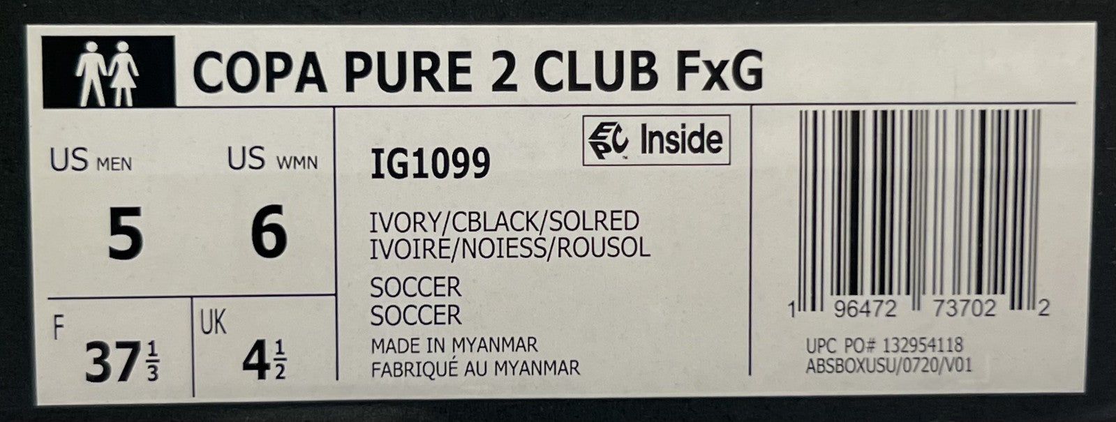 Adidas Copa Pure 2 Club FxG Soccer Cleats Men’s 5 / Women’s 6 White IG1099