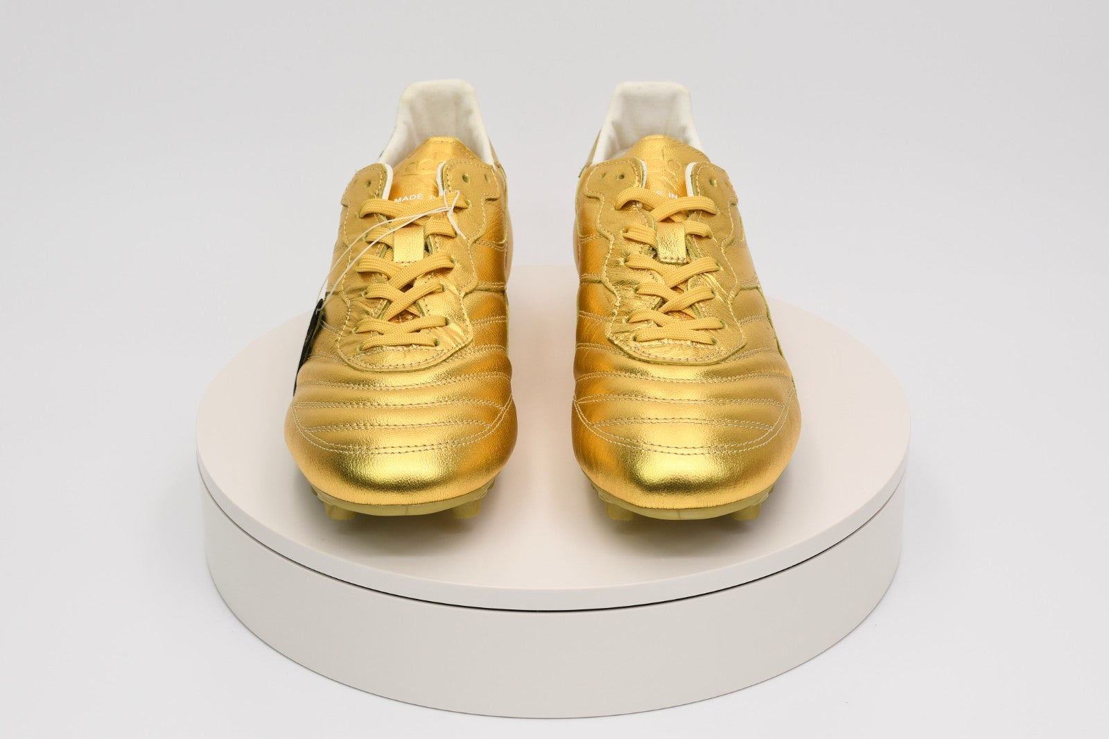 Handcrafted in Montebelluna, Italy , these cleats feature an ultra-soft, premium kangaroo leather upper that molds perfectly to the foot for an unrivaled touch, precision, and comfort. The metallic gold brown finish delivers a commanding on-field presence, while the "1984" heel embossing commemorates the launch era of Diadora's legendary Brasil line.