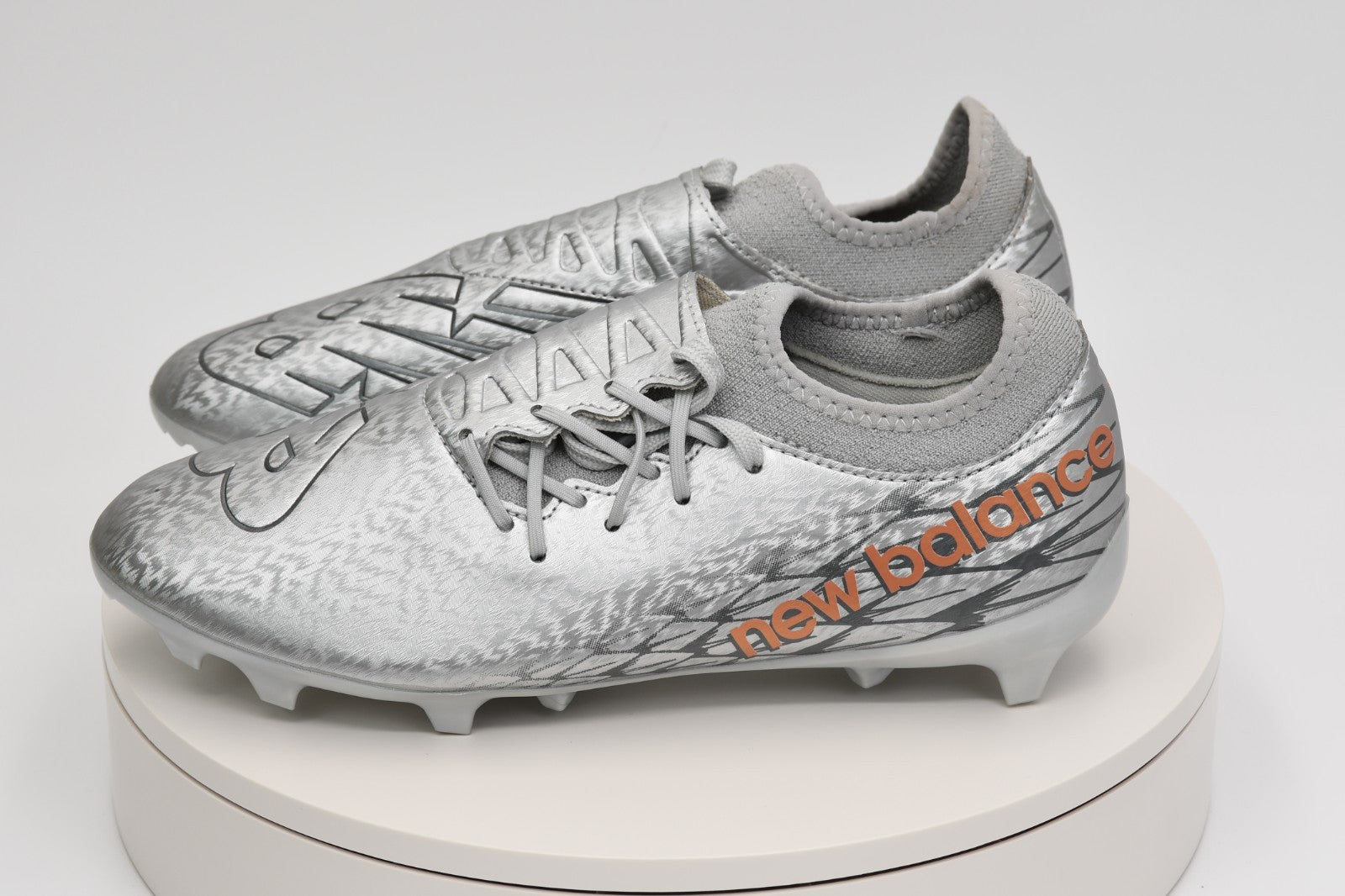 with bronze "New Balance" branding offers a modern, bold look that stands out in every match.